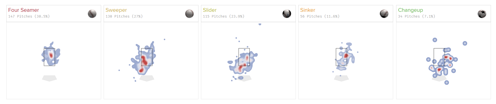 다만 싱커를 구사한 경험이 많지는 않아서인지 탄착군에 다소 기복이 있었다. 마이너리그에서는 싱커가 다소 높게 제구되어 메이저리그에서 만큼의 땅볼 유도 능력을 보여주지는 못했다. (평균 발사 각도 8도) 홈런이 잘 나오기로 악명이 높은 문학구장에서 적응하기 위해서는 싱커의 제구를 안정적으로 유지하는 것이 필요할 것이다.