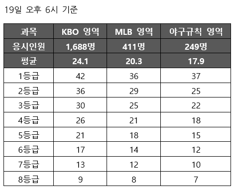 2019학년도 야구수학능력시험 정답 공개! 2019학년도 야구수능의 과목별 정답과 해설을 다음과 같이 공개합니다. 과목별 등급컷도 참고해 주시기 바랍니다~ 과목별 우수자는 아래와 같습니다. (19일 오후 6시 기준) […]