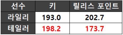 < 표2. 2024년 라일리와 2025년 테일러 키, 릴리스 포인트 비교 (단위: cm) >