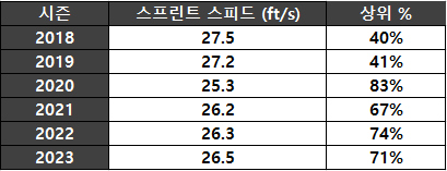 < 카스트로 MLB 스프린트 스피드 기록>