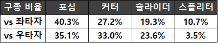 [ 표2 = 2025시즌 좌우 타자 상대 시 구종 구사 비율 차이 ]