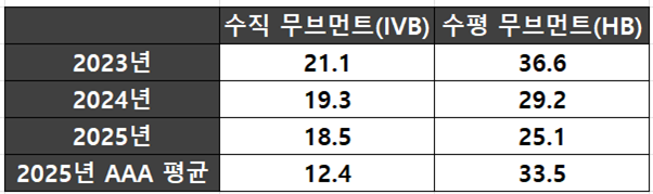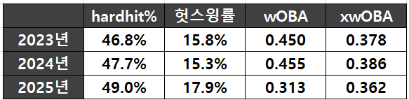< 2023년~2025년 트리플 A 포심 세부 성적 >