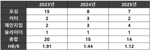 < 2023년~2025년 트리플 A 구종별 피홈런 >