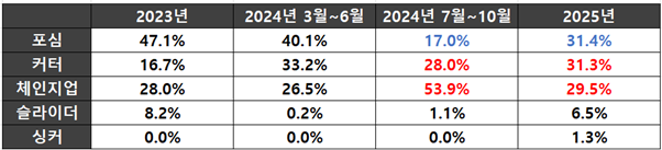 < 2023년~2025년 트리플 A 구종 구사 비율 >
