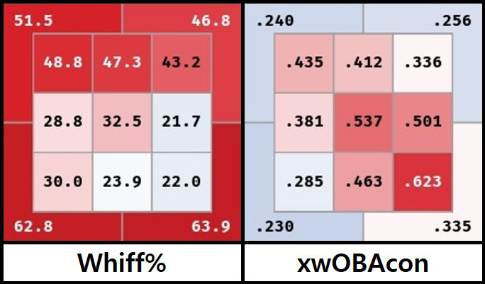 위즈덤은 2025시즌 KBO에서 포심 RV/100 -0.14, 싱커 RV/100 2.63으로 싱커에 더 강한 모습을 보였다. 작은 표본이니만큼 값이 튀긴 하지만 KBO에서도 동일한 경향이 유지된 것이다.
