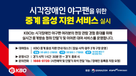 2023년 KBO가 일부 구장에서 운영 중인 음성 중계 서비스는 접근성을 제도 형태로 도입한 사례다. 다만 이 역시 특정 조건에 국한돼 있다. 전체 등록장애인 가운데 해당 서비스의 주요 대상인 시각장애인은 9.4%에 불과하다.